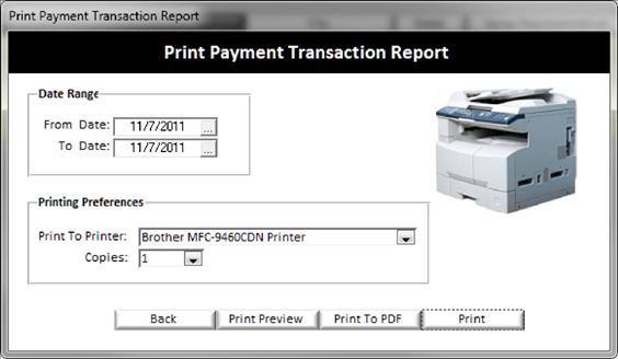 To print or preview this report, click on the Accounting Tab, then on the Payment Transaction Report icon in the reporting section.
